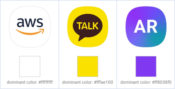 먼저 삽입될 앱 아이콘 이미지의 색상을 추출하기 위해 androidx 패키지의 Palette 라이브러리를 사용해 보았습니다. Palette 라이브러리는 해당 이미지의 색상과 잘 어울리는 6가지의 Material Color 와 가장 많은 빈도수를 차지하는 dominant color 를 제공해 주는데, 원하는 목표와 완전히 부합되진 않지만 dominant color 로 테스트를 해보았습니다.